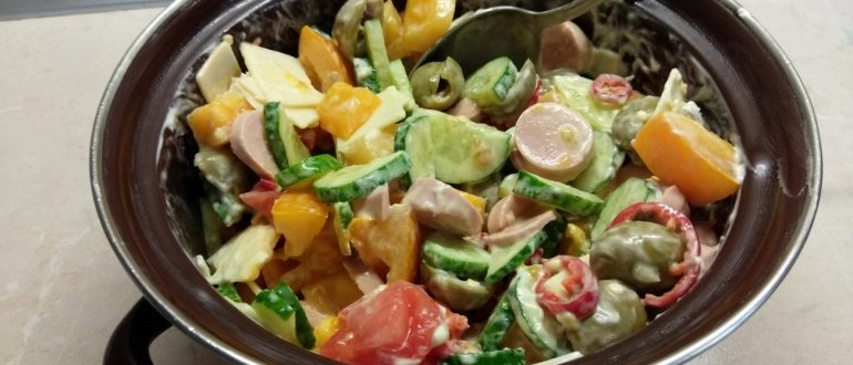 Салат с овощами и сосисками рецепт