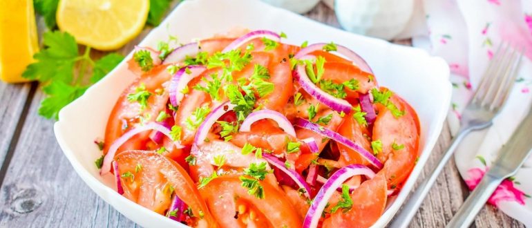 Турецкий салат из помидоров, оливок, лука и хлеба рецепт