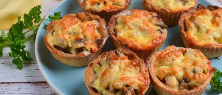 Тарталетки с курицей, грибами и сыром рецепт