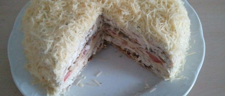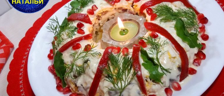 Салат «Рождественский венок» с куриным филе, сыром и яйцами рецепт