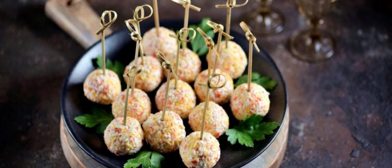 Закусочные шарики с красной рыбой, крабовыми палочками и двумя видами сыра рецепт