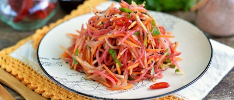 Салат «Удивлённая студентка» из редьки рецепт