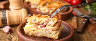 - Соединение с картофелем: Аккуратно добавьте в сковороду полуготовый картофель. Перемешайте, чтобы картофель равномерно покрылся соусом.