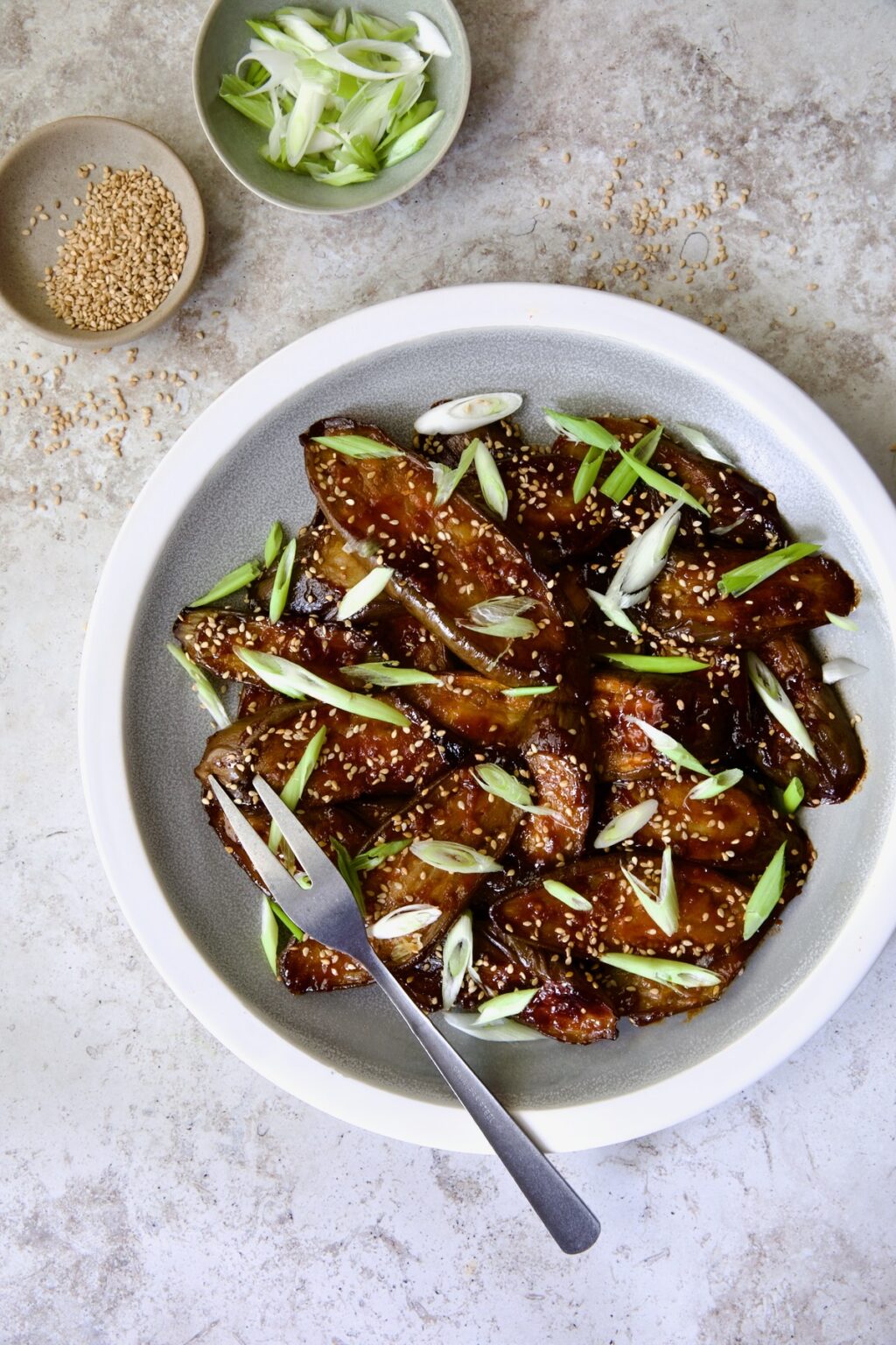 Подача: Перед подачей посыпать корейские баклажаны кунжутными семечками (по желанию).