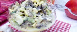 Салат «Изумрудный» с ветчиной, грибами и сыром рецепт