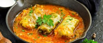 Голубцы со свининой, фасолью и рисом, в соусе из помидоров и сладкого перца рецепт