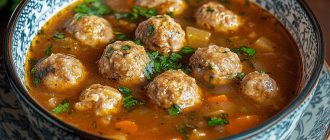 Суп с жареными тефтелями и яичной лапшой рецепт