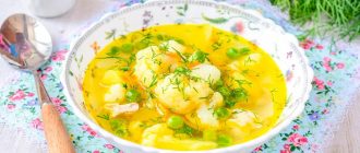 Суп «Куриная радость» с клецками и цветной капустой рецепт