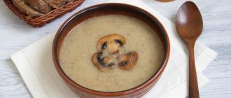 Гороховый суп-пюре с жареными шампиньонами (на курином бульоне) рецепт
