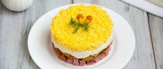 Слоеный салат «Любимый» с ветчиной и грибами рецепт