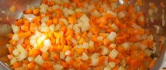 - Обжарка овощей: В казане или глубокой сковороде разогреть растительное масло. Обжарить лук до прозрачности, затем добавить морковь и жарить еще 5-7 минут, помешивая.