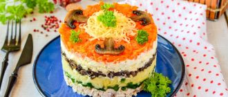 - Подача: Выложите салат в красивое сервировочное блюдо. При желании, украсьте свежей зеленью.