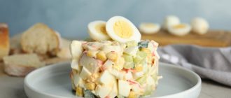 - Салат Оливье «Для буржуев» лучше подавать охлажденным.