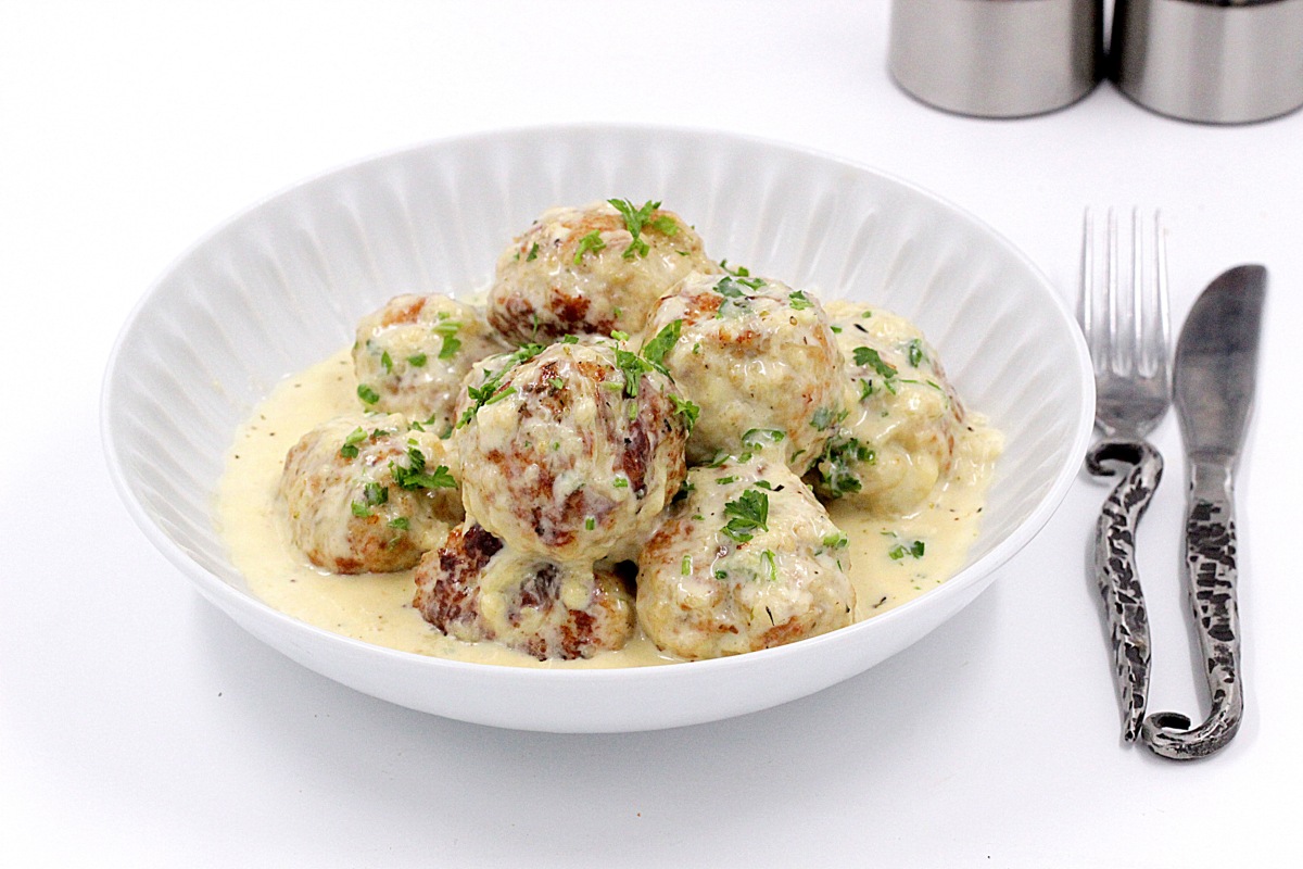 - Равномерно полейте шарики приготовленным сливочным соусом.